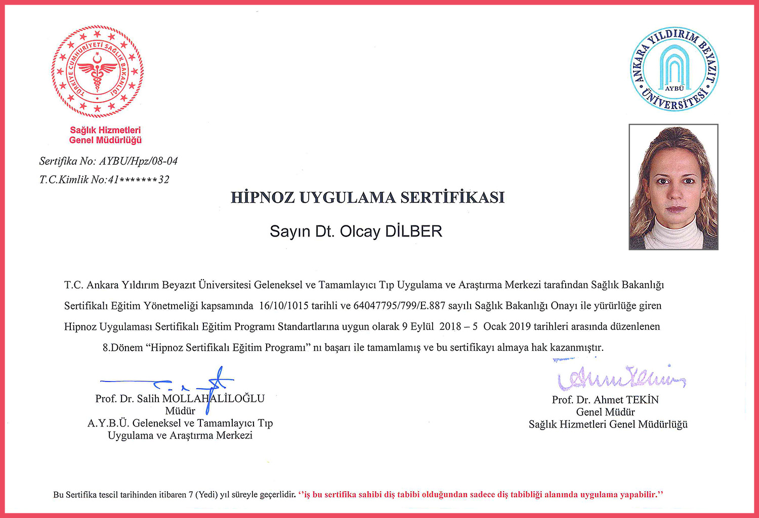 • Yıldırım Beyazıt Üniversitesi tarafından Düzenlenen Sağlık Bakanlığı onaylı 200 saatlik Hipnoz Kursu 2018